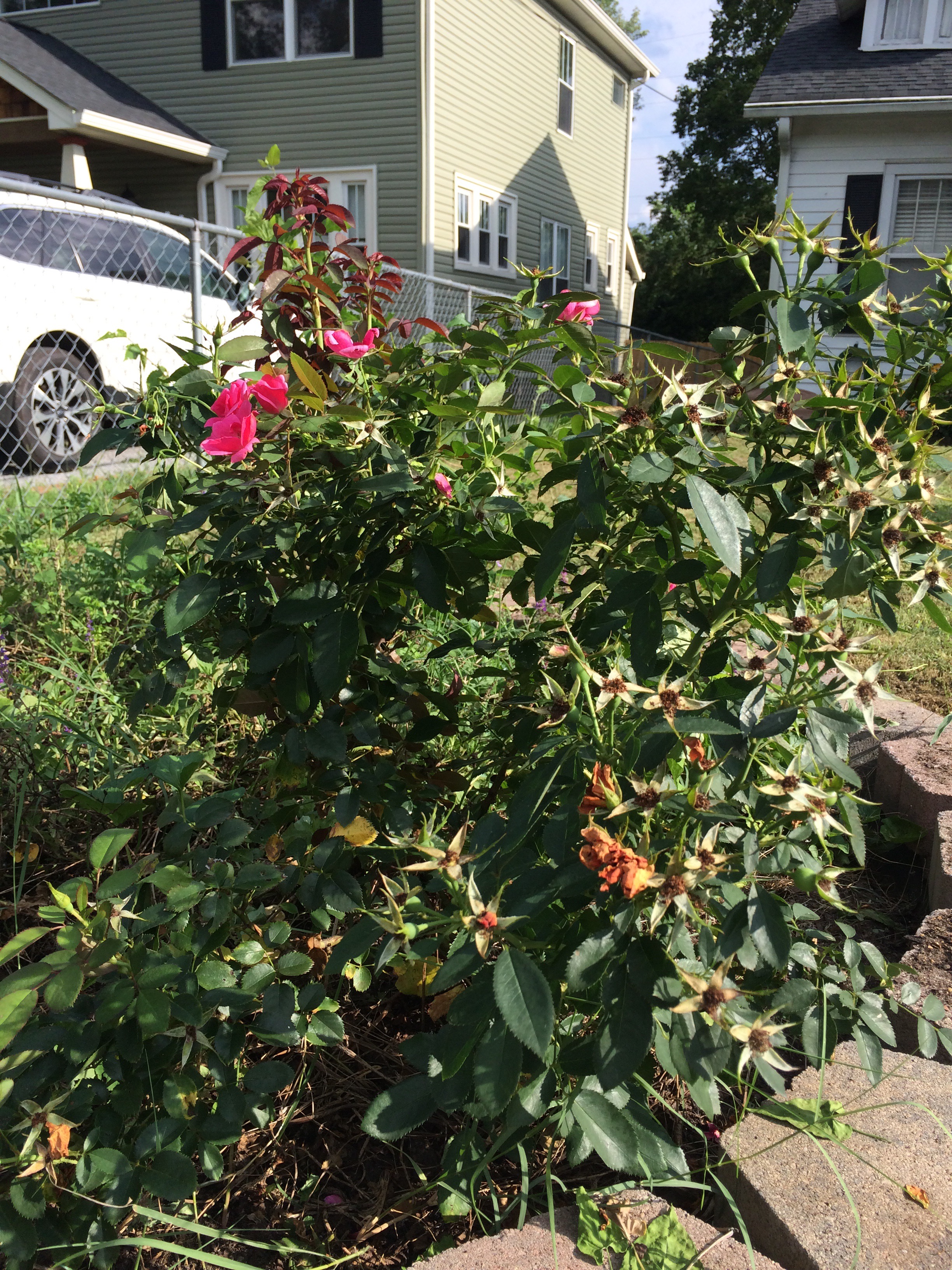 The rose bush was amazingly still flowering underneath the tentacles…now I (and everyone who passes my garden) can actually see it!
